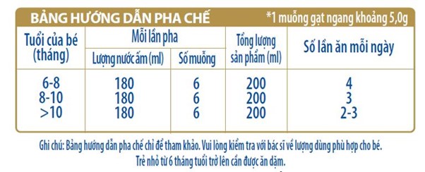 Chú ý khi sử dụng: Dùng sữa trong vòng 1 tiếng sau khi pha. Pha sữa theo đúng hướng dẫn. Cho trẻ ăn bằng cốc, muỗng được rửa sạch sẽ.